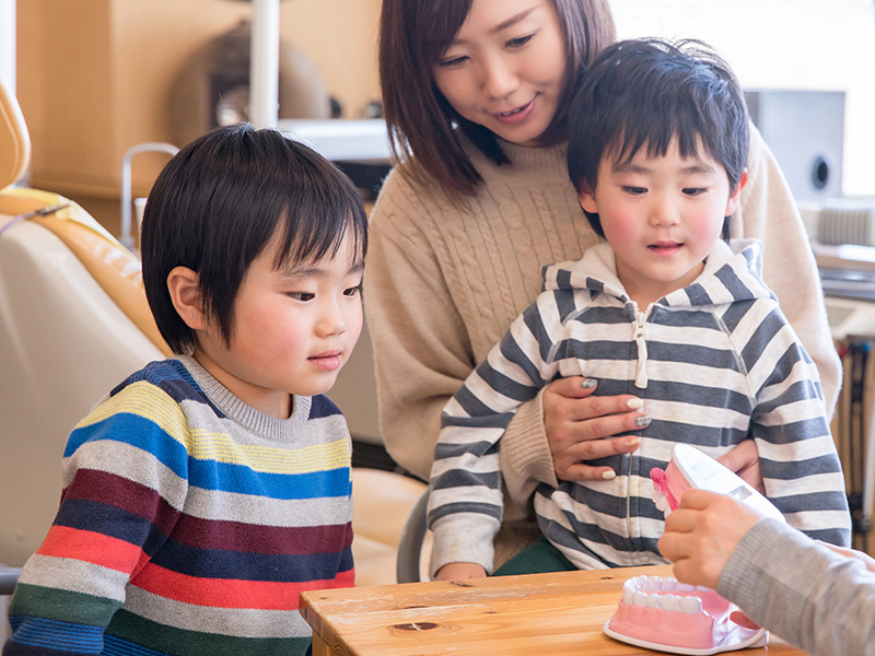 乳歯のむし歯をそのままにしておくと、後に生える永久歯がまっすぐ生えてこないなど、将来的に悪影響を与えることがあります。当院では、お子さまに歯医者への恐怖心を植え付けないよう、無理に治療を進めることはいたしません。お一人お一人のペースに合わせた丁寧な治療を心がけています。